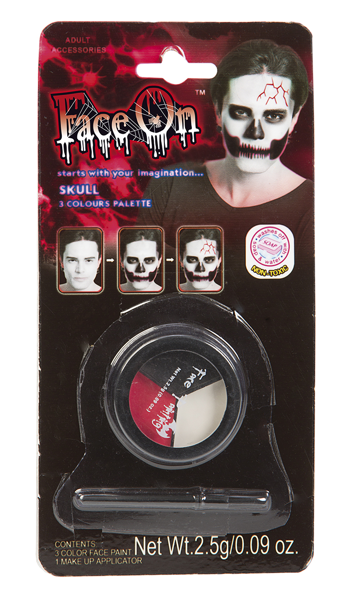 Kallomeikki. Öljypohjaiset kasvovärit: musta, valkoinen, punainen
