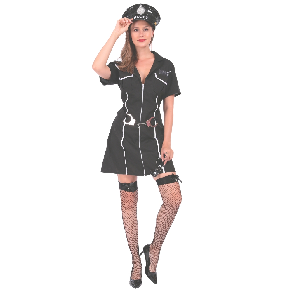 Naisten Poliisiasu (One Size). Sisältää mekon ja käsiraudat